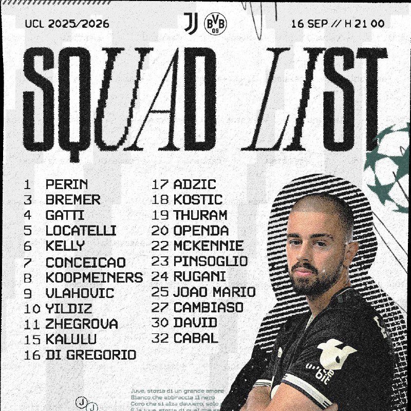 🚨🚨⚽️ • قائمة يوفنتوس الرسمية لمواجهة بروسيا دورتموند الليلة.