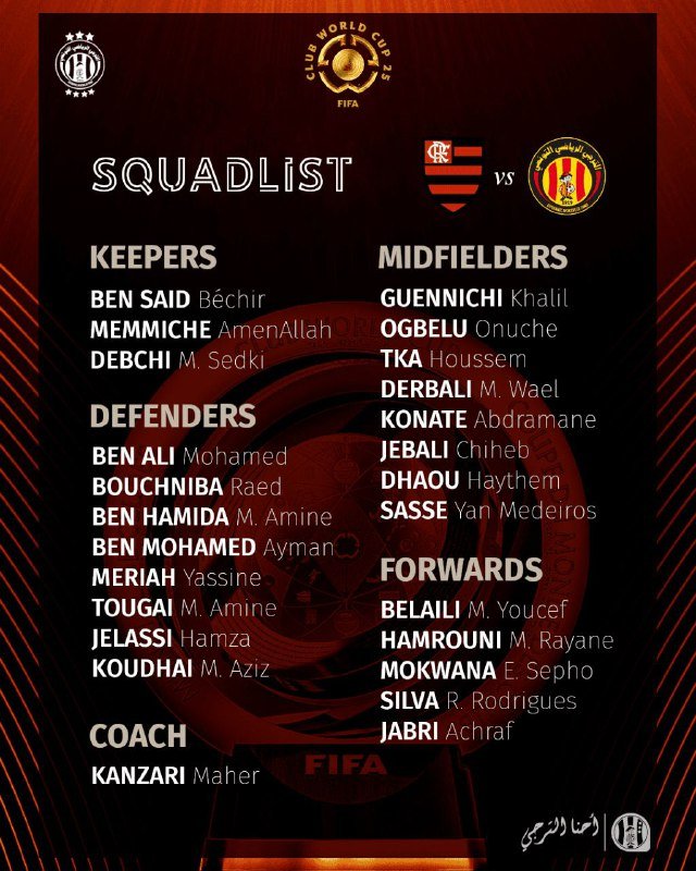 🚨🚨🚨🇹🇳• قائمة الترجي التونسي المستدعاة للمشاركة في كأس العالم للأندية. ✅⚽️ تصفّح المقالات بيبي إسترادا (راديو ماركا) : “إذا لم يفز تشابي ألونسو بكأس العالم للأندية، فهو…— قريبًا في سانتياغو برنابيو. …