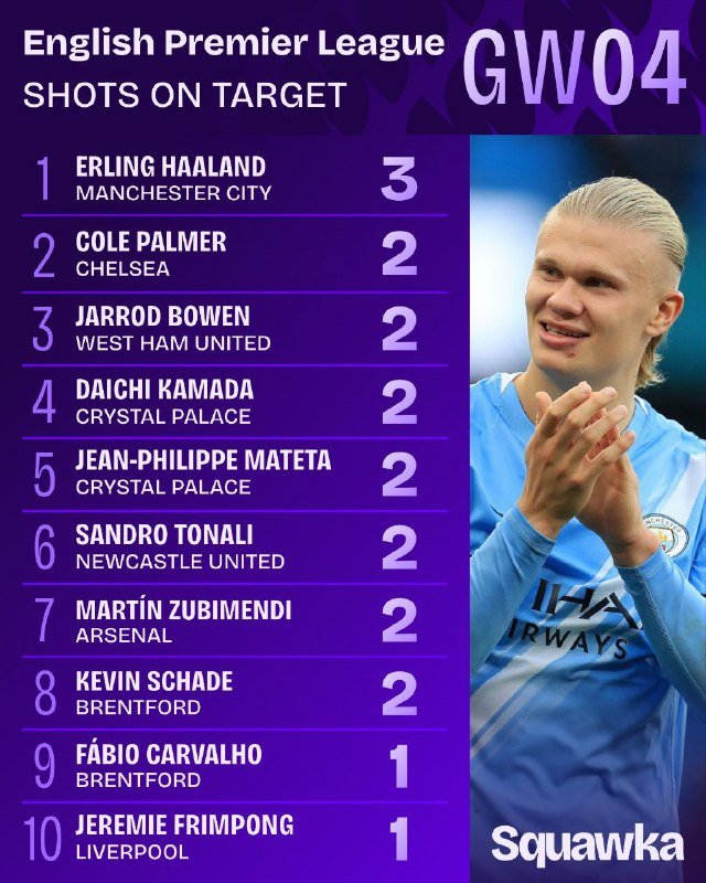 🏴󠁧󠁢󠁥󠁮󠁧󠁿📊 | تصدر إيرلينغ هالاند الأكثر تسديدًا على المرمى في الجولة الرابعة بـ[3] تسديدات