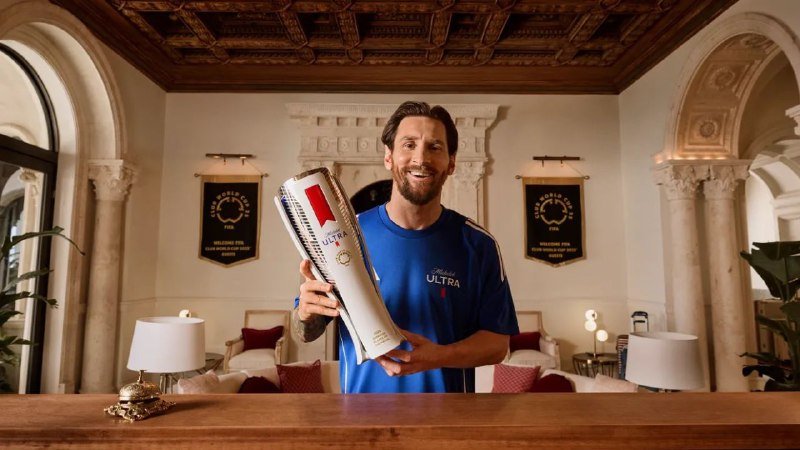 📸 – الأسطورة ليونيل ميسي مع جائزة “رجل المباراة” التي ستقدم في مباريات كأس العالم للأندية ⚽️.