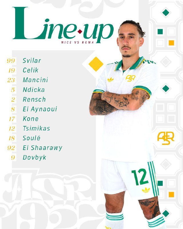 🚨🚨⚽️ | تشكيلة روما الرسمية لمواجهة نيس في الدوري الأوروبي. تصفّح المقالات | تشكيلة اتلتيكو مدريد الرسمية لمواجهة رايو فاليكانو….• تشكيلة آرسنال الرسمية لمواجهة بورت فيل….