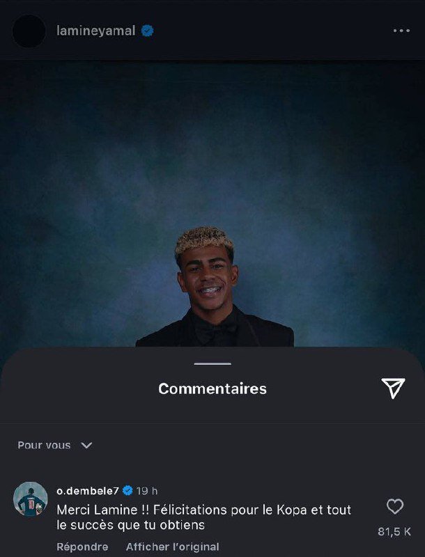 🚨🚨🚨🗣 عثمان ديمبيلي ردًا على تهنئة لامين يامال:شكرًا لك يا لامين!! تهانينا على جائزة كوبا وكل النجاح الذي تحققه حاليًا. تصفّح المقالات • تشكيلة آرسنال الرسمية لمواجهة بورت فيل….• تشكيلة نوتنغهام فورست لمواجهة ريال بيتيس في الدوري الأوروبي….