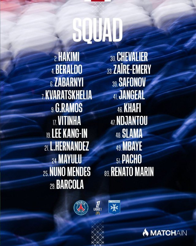 🚨🚨⚽️ • قائمة باريس سان جيرمان المستدعاة لمواجهة أوكسير اليوم..