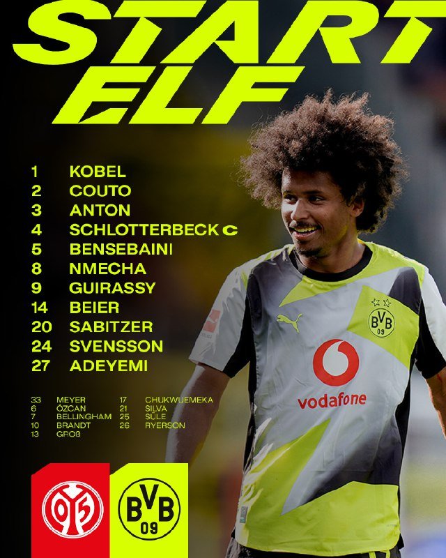 🚨🚨⚽️• تشكيلة بوروسيا دورتموند الرسمية لمواجهة ماينز.