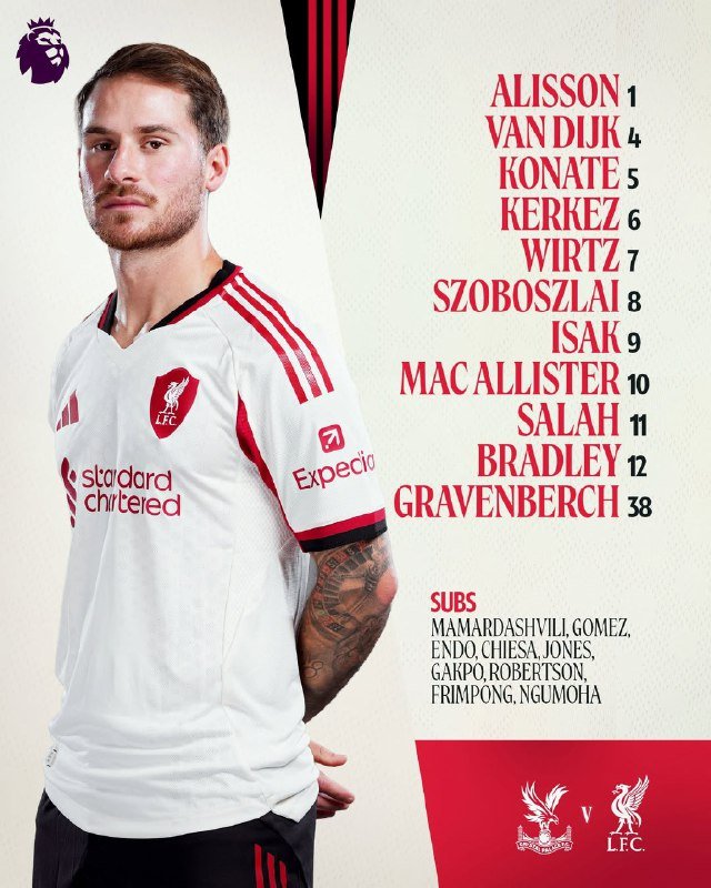 🚨🚨⚽️• تشكيلة الفريقين الرسمية [كريستال بالاس × ليفربول]: