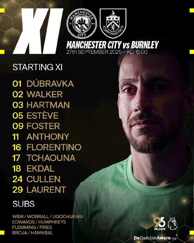 🚨🚨⚽️• تشكيلة الفريقين الرسمية [مانشستر سيتي × بيرنلي]: