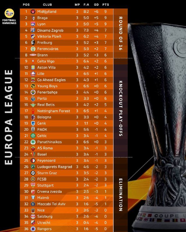 🚨🚨🇪🇺 | ترتيب الدوري الأوروبي بعد نهاية الجولة الثالثة.