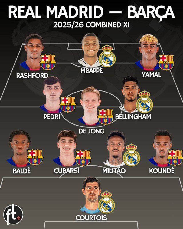 🚨⚪️💙 • التشكيلة المشتركة بين برشلونة و ريال مدريد حسب Football Tweet.