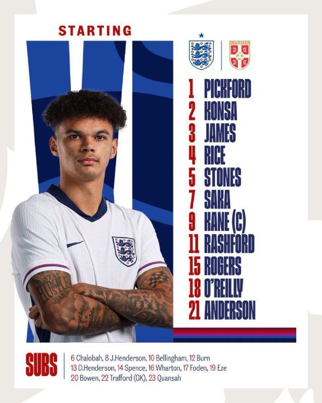 🚨🚨🏴󠁧󠁢󠁥󠁮󠁧󠁿 | تشكيلة منتخب إنجلترا الرسمية لمواجهة صربيا.
