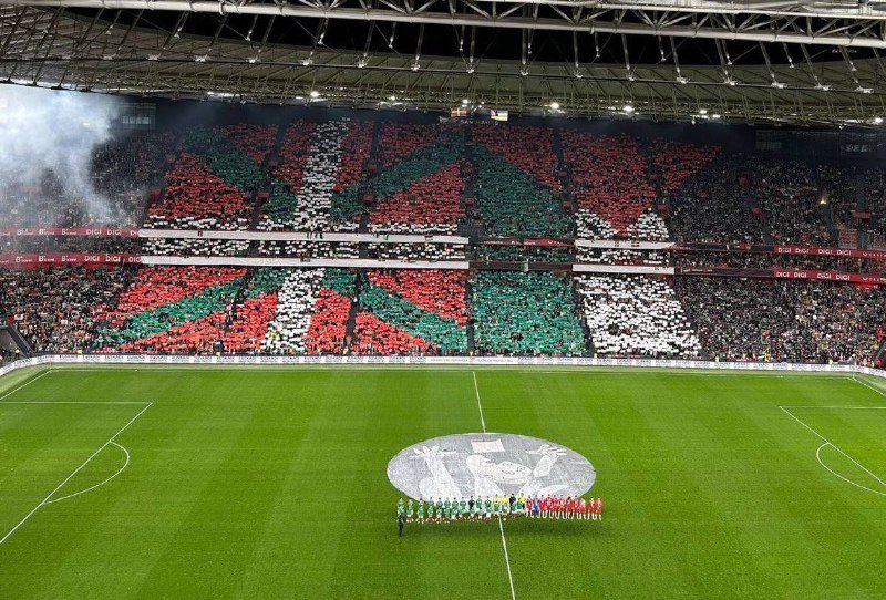 — تيفو جماهير ملعب سان ماميس في مباراة فلسطين وكتالونيا. 🇵🇸❤️‍🔥