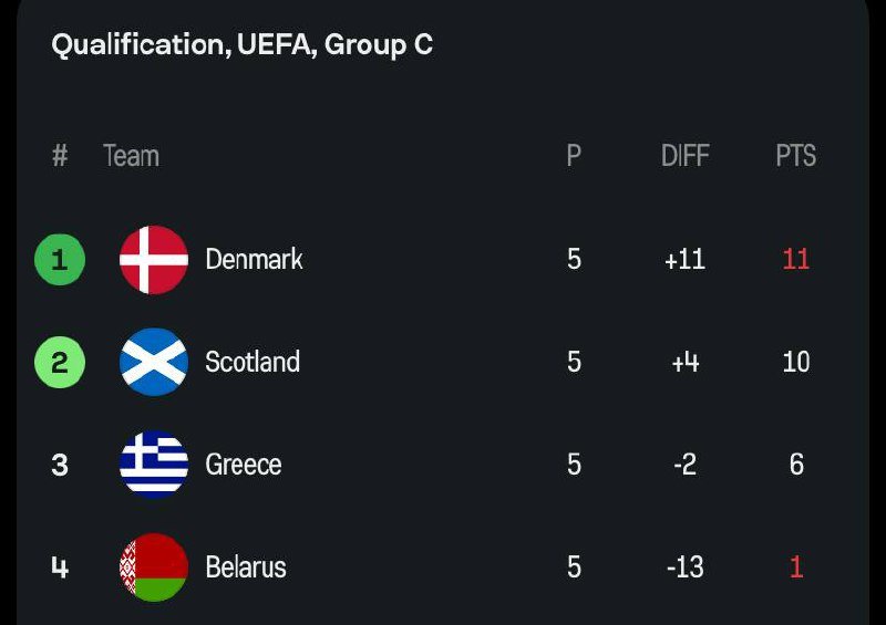 🚨🚨🇪🇺 | ترتيب المجموعة الثالثة في تصفيات أوروبا لكأس العالم بعد نهاية الجولة الخامسة.— بعد تعثر أسكتلندا والدنمارك، سيتعين على المنتخب الاسكتلندي الفوز على الدنمارك لخطف بطاقة التأهل للمونديال. تصفّح المقالات | ترتيب المجموعة الخامسة في تصفيات أوروبا لكأس العالم بعد نهاية الجولة الخامسة….| ترتيب المجموعة الثانية في تصفيات أوروبا لكأس العالم بعد نهاية الجولة الخامسة….