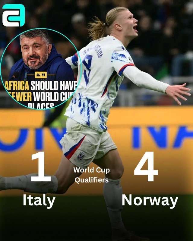 – ثم في 16 نوفمبر، النرويج تفوز على إيطاليا بنتيجة عريضة [4-1] وتُقصى إيطاليا إلى الملحق.🥶 🥶 🔥