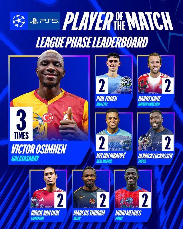 — فيكتور أوسيمين هو أكثر من حقق جائزة رجل المباراة بدوري أبطال أوروبا هذا الموسم…