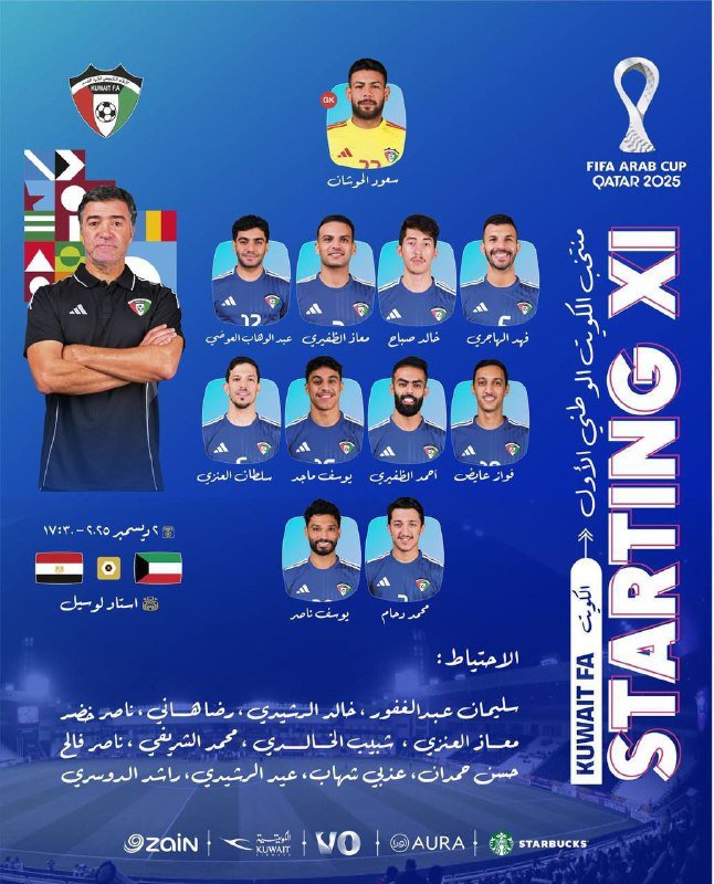 🚨🚨🇰🇼 تشكيلة الكويت الرسمية لمواجهة مصر.