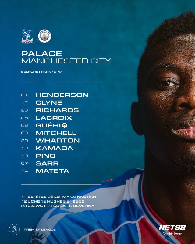 – تشكيلة الفريقين الرسمية [كريستال بالاس × مانشستر سيتي].