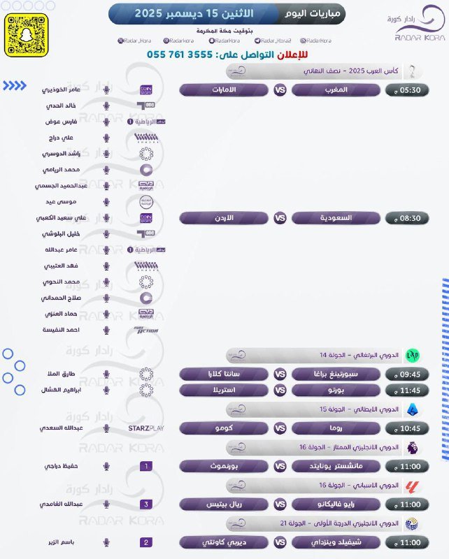 مُباريات اليوم: الأثنين 15 ديسمبر.• لا تخلوا المباريات تلهيكم عن الصلاة أو تكون …
