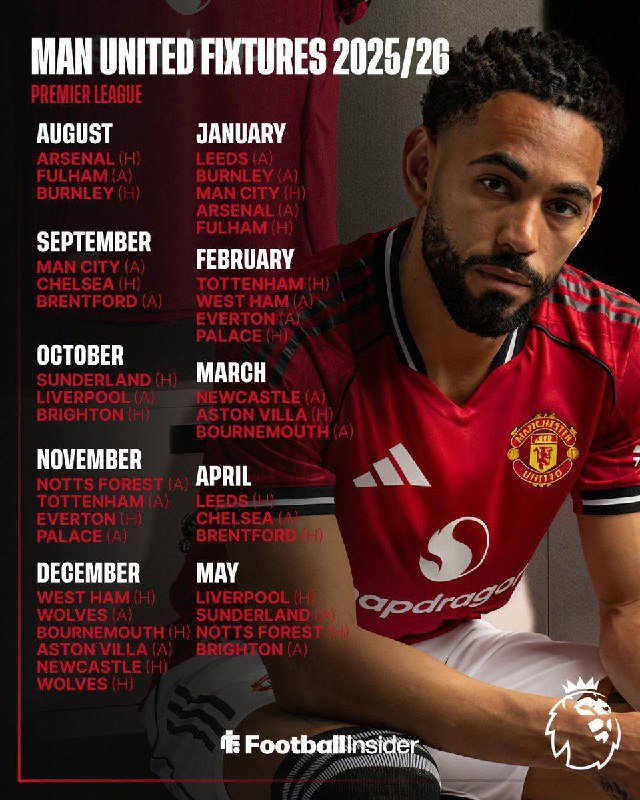 • جدول مباريات مانشستر يونايتد في الدوري الإنجليزي لموسم 25/26.. #MUFC …