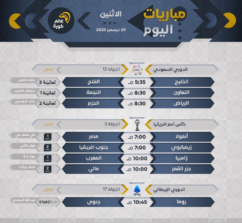 جميع المباريات بتوقيت 🇸🇦