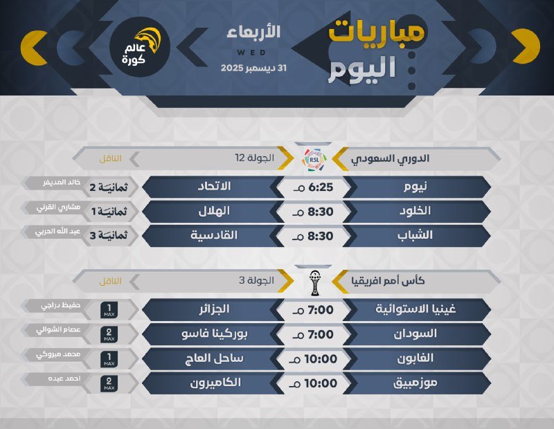 جميع المباريات بتوقيت 🇸🇦