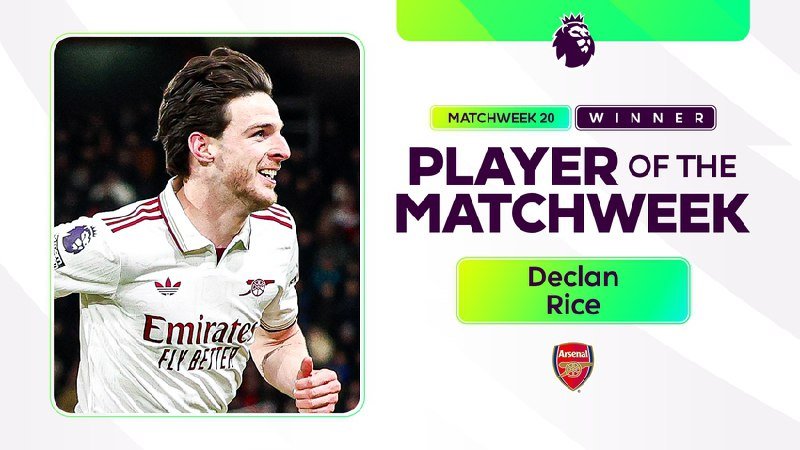 رســـمـــيًّـــا |– ديكلان رايس لاعب الأسبوع في الدوري الإنجليزي. رســـمـــيً…
