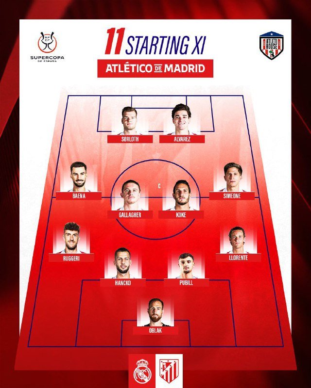 🚨🚨⚽️ • تشكيلة أتلتيكو مدريد الرسمية لمواجهة ريال مدريد.