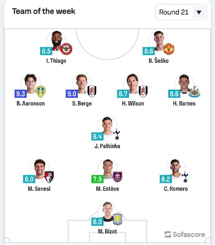 🚨📊 • تشكيلة الجولة 21 من البريميرليغ باختيارات SofaScore.