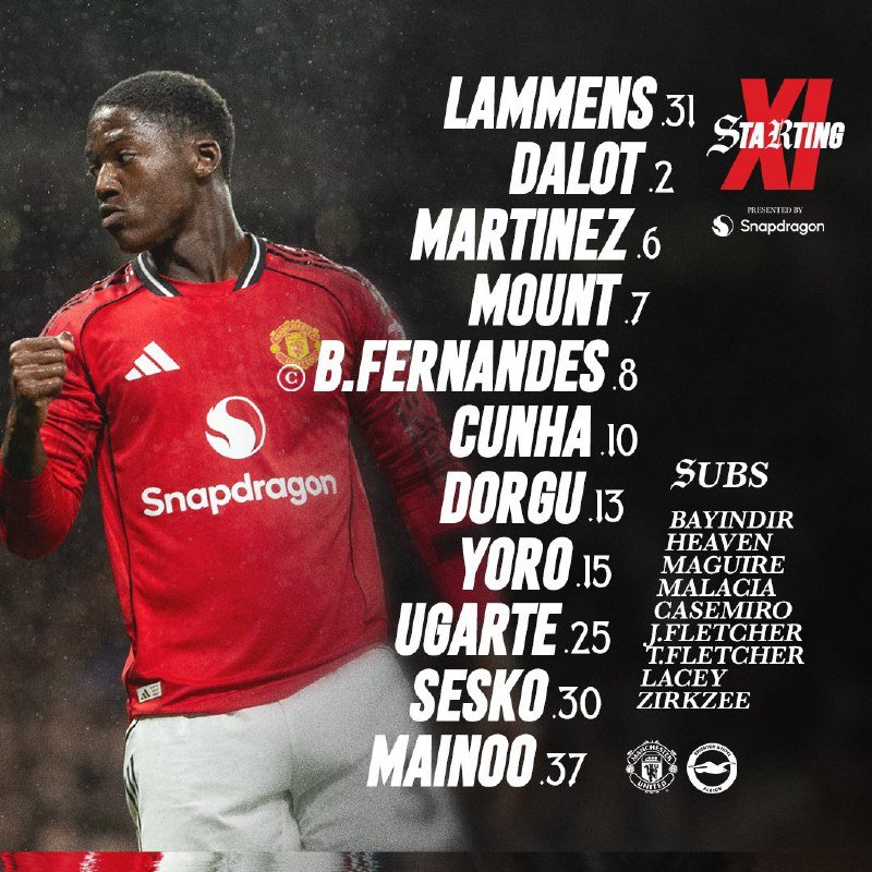 🚨🚨🏆• تشكيلة الفريقين الرسمية [مانشستر يونايتد × برايتون].