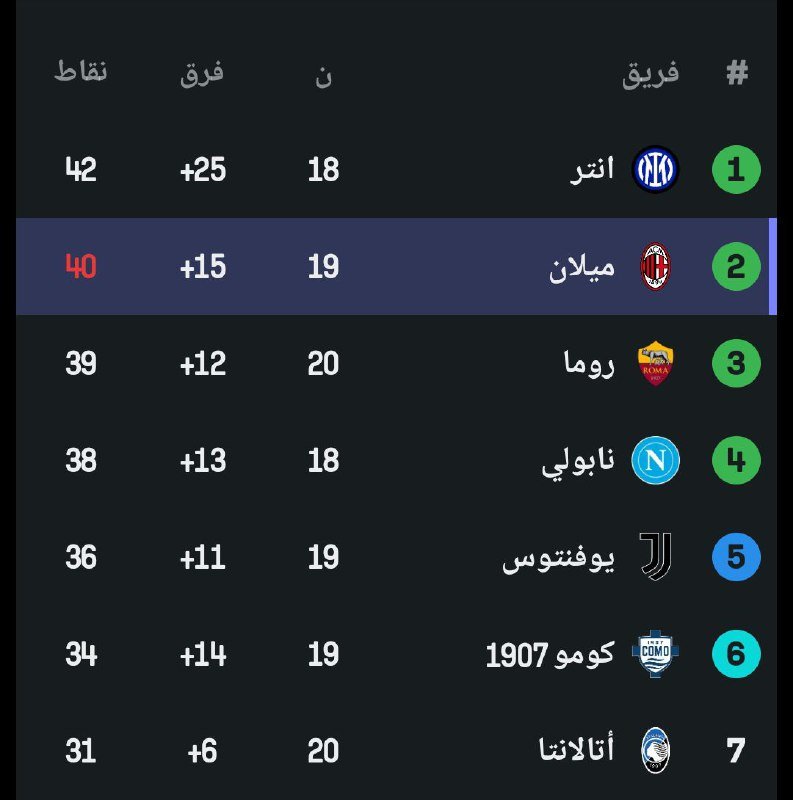 🚨🚨🇮🇹 • جدول ترتيب الدوري الإيطالي بعد تعادل إيه سي ميلان مع فيورنتينا. 🚨🇮🇹 | نهاية المُباراة [الدوري الإيطالي – الجولة 20]: • [⚽️] فيورنتينا 1-1 إيه سي ميلان [⚽️] ⚽️⚽️ كوموزو بيترو. 🇫🇷⚽️ كريستوفر نكونكو. تصفّح المقالات عـــاجـــل – RMC |• كيليان مبابي على مقاعد البدلاء في الكلاسيكو اليوم. …| نهاية المُباراة [الدوري الإيطالي – الجولة 20]:• [] فيورنتينا 1-1 إيه سي ميلان…