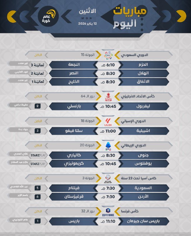 جميع المباريات بتوقيت 🇸🇦