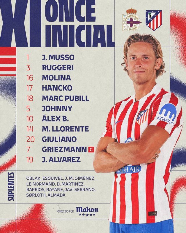 🚨🚨⚽️ • تشكيلة أتلتيكو مدريد الرسمية لمواجهة نادي ديبورتيفو لاكرونيا.