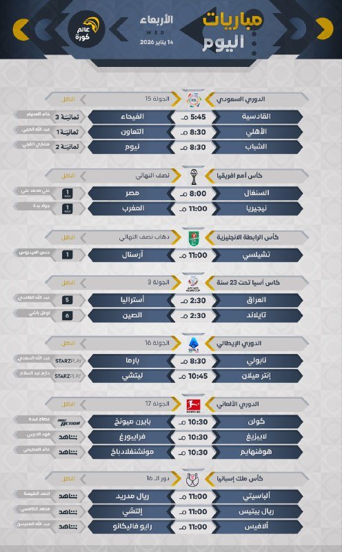 جميع المباريات بتوقيت 🇸🇦