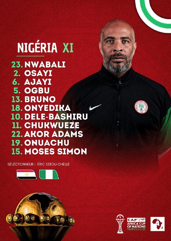 🚨🚨🇳🇬• تشكيلة منتخب نيجيريا الرسمية لمواجهة منتخب مصر [لتحديد المركز الثالث].