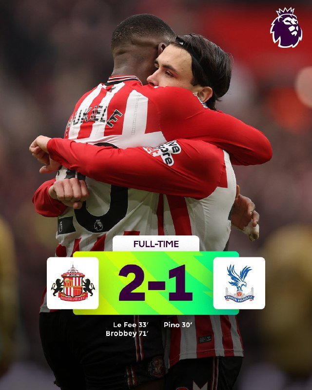 🚨⚽️ | نهاية المُباراة [الدوري الإنجليزي – الجولة 22]:• [⚽️] سندرلاند 2-1 كريستال بالاس [⚽️]🔵⚽️ يرمي بينو.🤩⚽️ إنزو لو في 🅰️ نوردي موكيلي.🤩⚽️ برايان بروبي. تصفّح المقالات | نهاية المُباراة [الدوري الألماني – الجولة 18]:• [] بروسيا دورتموند 3-2 سانت ب… • ليفربول لعب ضد الأندية الصاعدة (سندرلاند & بيرنلي & ليدز) 5 مرات ول…