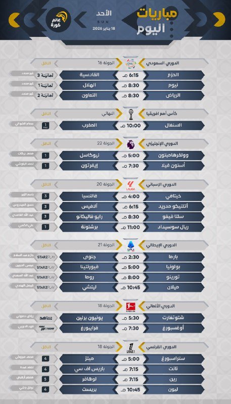 جميع المباريات بتوقيت 🇸🇦