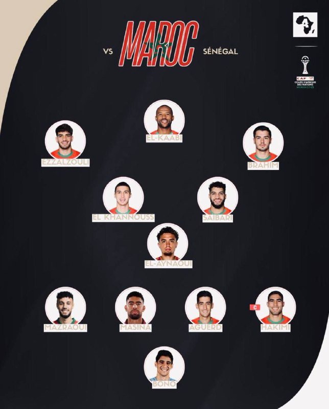 🚨🚨الرسم التكتيكي 🚨🚨 🚨🚨🇲🇦 • تشكيلة المغرب الرسمية لمواجهة السنغال في نهائي أمم أفريقيا. تصفّح المقالات بالنتيجة الحالية: استون فيلا ثاني البريميرليغ بفارق 6 نقاط عن المتصدر أرسنال وب…إلياس بن صغير خارج قائمة النهائي بسبب الإصابة • تشكيلة المغرب الرسمية لمواجهة …