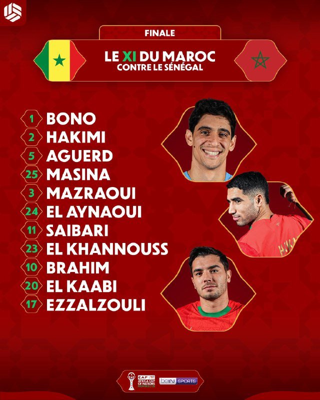🚨🚨🇲🇦 • تشكيلة المغرب الرسمية لمواجهة السنغال في نهائي أمم أفريقيا. تصفّح المقالات إلياس بن صغير خارج قائمة النهائي بسبب الإصابة • تشكيلة المغرب الرسمية لمواجهة …| نهاية الشوط الأول [الدوري الإيطالي – الجولة 21]:• [] تورينو 0-1 روما [] دونيا…