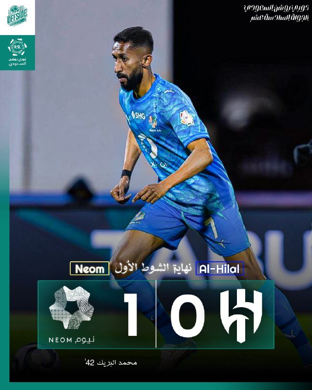 | نهاية الشوط الأول [دوري روشن السعودي- الجولة 16]:• [] نيوم 1-0 الهلال []• محم…