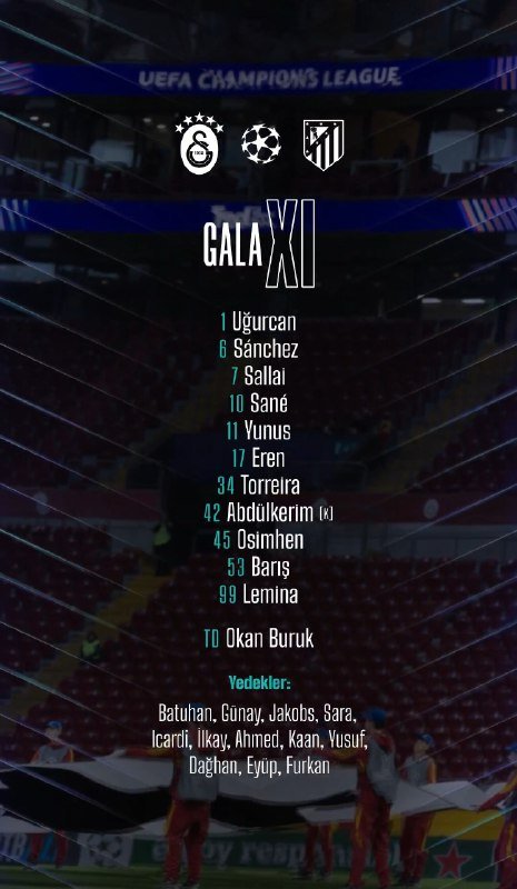 • تشكيلة غلطة سراي. • تشكيلة أتلتيكو مدريد الرسمية لمواجهة غلطة سراي….
