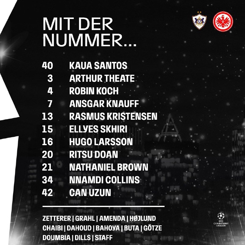 🚨🚨⚽️• تشكيلة الفريقين الرسمية [كاراباغ × آينتراخت فرانكفورت]. تصفّح المقالات • تشكيلة غلطة سراي. • تشكيلة أتلتيكو مدريد الرسمية لمواجهة غلطة سراي….• تشكيلة نادي النصر الرسمية لمواجهة ضمك….