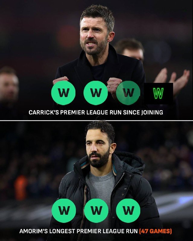 🚨📊 — مايكل كاريك خلال 3 مباريات فقط نجح في معادلة أطول سلسلة انتصارات متتالية لروبن اموريم مع مانشستر يونايتد (3 انتصارات)!