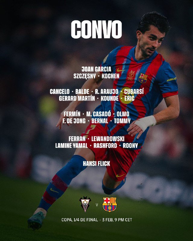 📮📮⚽️| قائمة برشلونة المستدعاة لمواجهة ألباسيتي اليوم في ربع نهائي كأس ملك إسبانيا. تصفّح المقالات غياب الأسطورة كريستيانو عن تدريبات النصر الصباحية….عــــاجــل ورســــمـــيًّــا • نادي الإتحاد السعودي يُعلن رسميًا التعاقد مع جو…