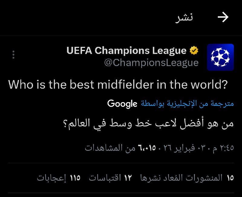 🚨🚨⚽️ — تساؤل من حساب دوري أبطال أوروبا على تويتر: