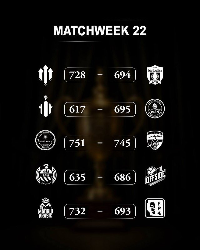 🚨🚨🚨🚨🚨 رسـميـــــًا | • نتائج الجولة الـ22 منّ البطولة الكبرى “سوبرليغ التيلغرام”. ⚽️| مانشستر يونايتد يعودون الى الطريق الصحيح سريعًا، الشياطين الحمر يحققون النقاط الثلاث من بوابة برشلونة نيوز. 🫡| العالمية تعود، كبرياء العالمية ينتصر، قناة أخبار الكرة العالمية تحقق أنتصارًا سهلًا على ميلان بالعربية، ميلان بالعربية يدخلون النفق الظلم ويحققون أسوأ سكور في الجولة. 🔥| قمة الجولة، قمة الكبار، قمة السكور الاعلى في الجولة ضد ثاني أعلى سكور في الجولة، قناة أخبار كرة القدم لا يتوقفون، زلزال في السوبرليغ، الانتصار السابع على التوالي والسلسلة مُستمرة بدون توقف، أرسنال بالعربي يسقطون ويخسرون النقاط الثلاث، الحظ يعاندهم في هذه الجولة. ⚽| قناة أوفسايد تنتصر، أوفسايد يحققون ثاني أنتصار لهم على التوالي وهـذه المرة أمام المتصدر، نعم المتصدر يسقط، مانشستر سيتي يسقطون ويتعثرون، المفأجاة تحدث بقرار من أوفسايد. ⚽️| ريال مدريد بالعربي ينتصرون، الميرينيغي يحققون ثاني أنتصار لهم على التوالي، قناة الفانتازي تخسر مجددًا أمام جبروت الملكي.