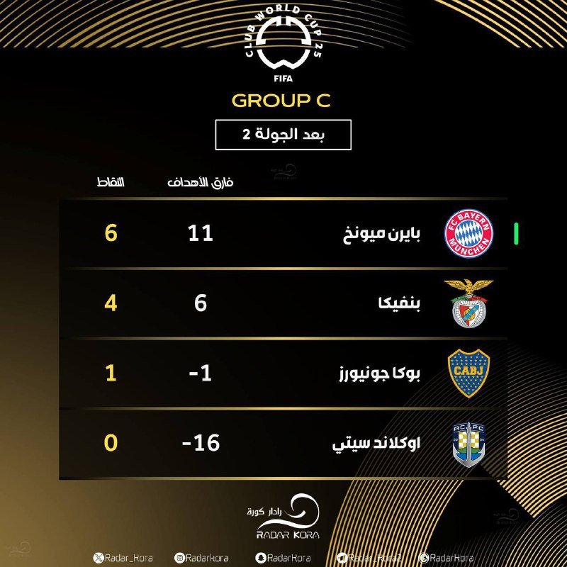 🚨🚨🚨  • ترتيب المجموعة الثالثة في مونديال الأندية بعد نهاية الجولة الثانية. 🏆