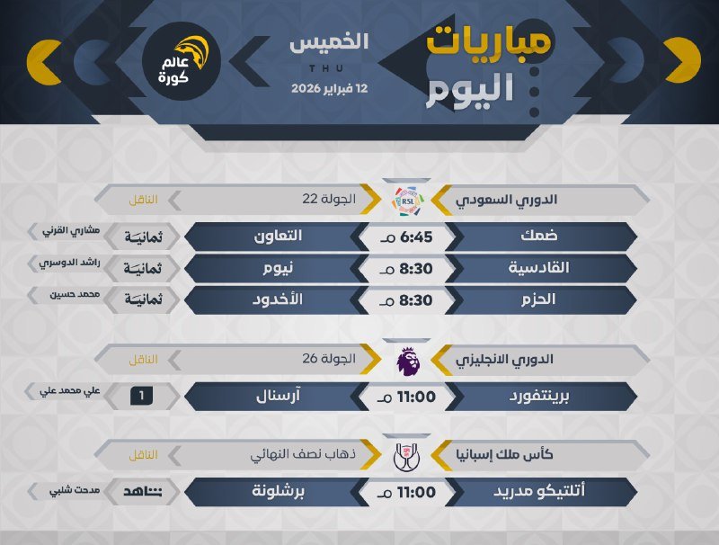 جميع المباريات بتوقيت 🇸🇦