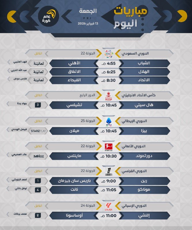 جميع المباريات بتوقيت 🇸🇦