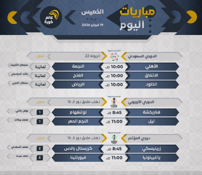 جميع المباريات بتوقيت 🇸🇦