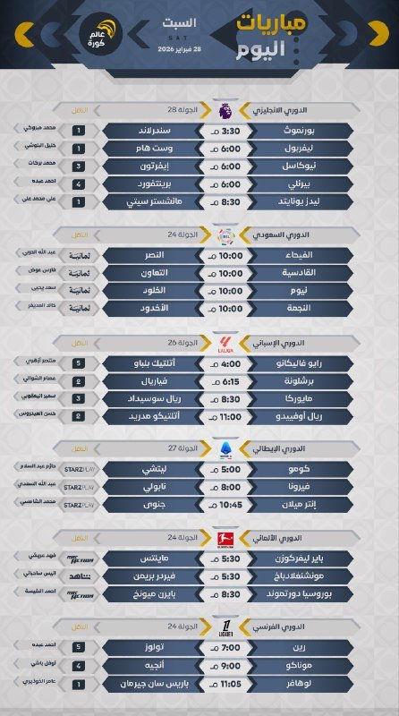 جميع المباريات بتوقيت 🇸🇦