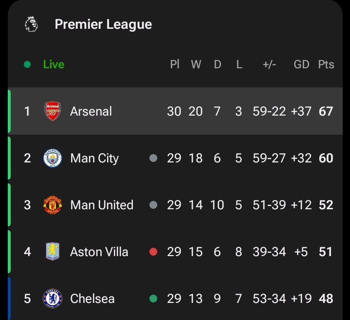 🚨🚨🚨⚽️⚽️ | الفارق يتسع رسميًّا بين آرسنال ومانشستر سيتي إلى [7] نقاط. تصفّح المقالات | نهاية الشوط الأول [الدوري الإنجليزي – الجولة التاسعة والعشرون]:• [] نيوكاسل ي…Superstar… | نهاية المُباراة [الدوري الإنجليزي – الجولة التاسعة والعشرون]: …
