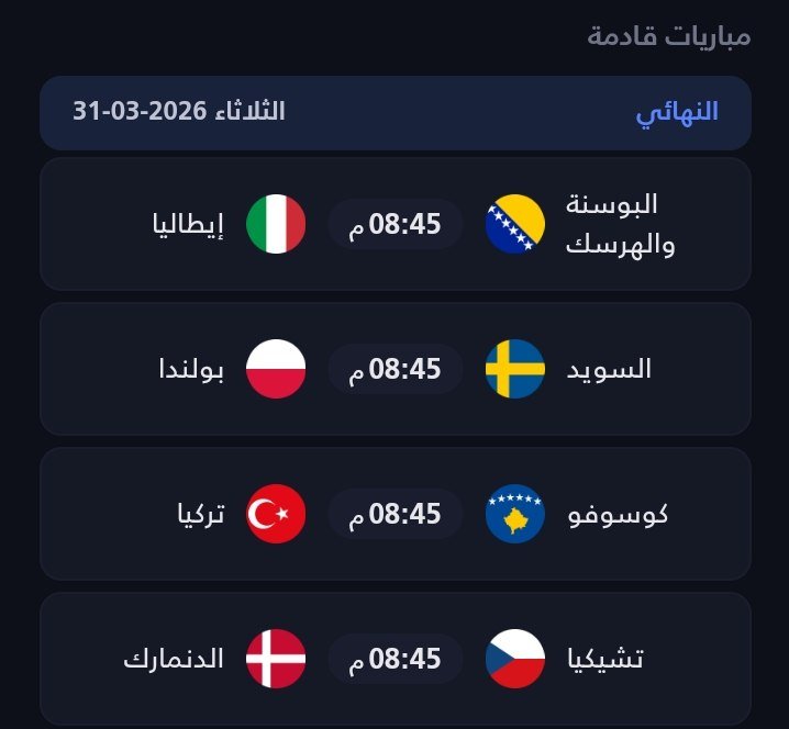 — مباريات نهائي الملحق الأوروبي المؤهل إلى كأس العالم 2026.